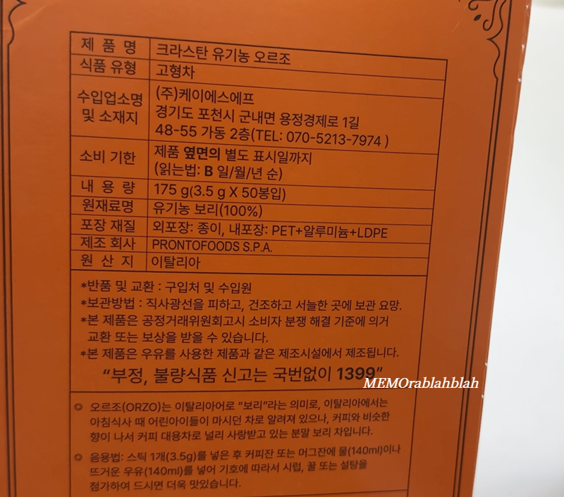아메리카노 같은 유기농 보리차 크라스탄 오르조 후기입니다. 이탈리아산 유기농 보리차인데 맛이 진해서 커피느낌이 나는 차입니다. 디카페인 커피 대신 마시려고 주문해 봤어요.